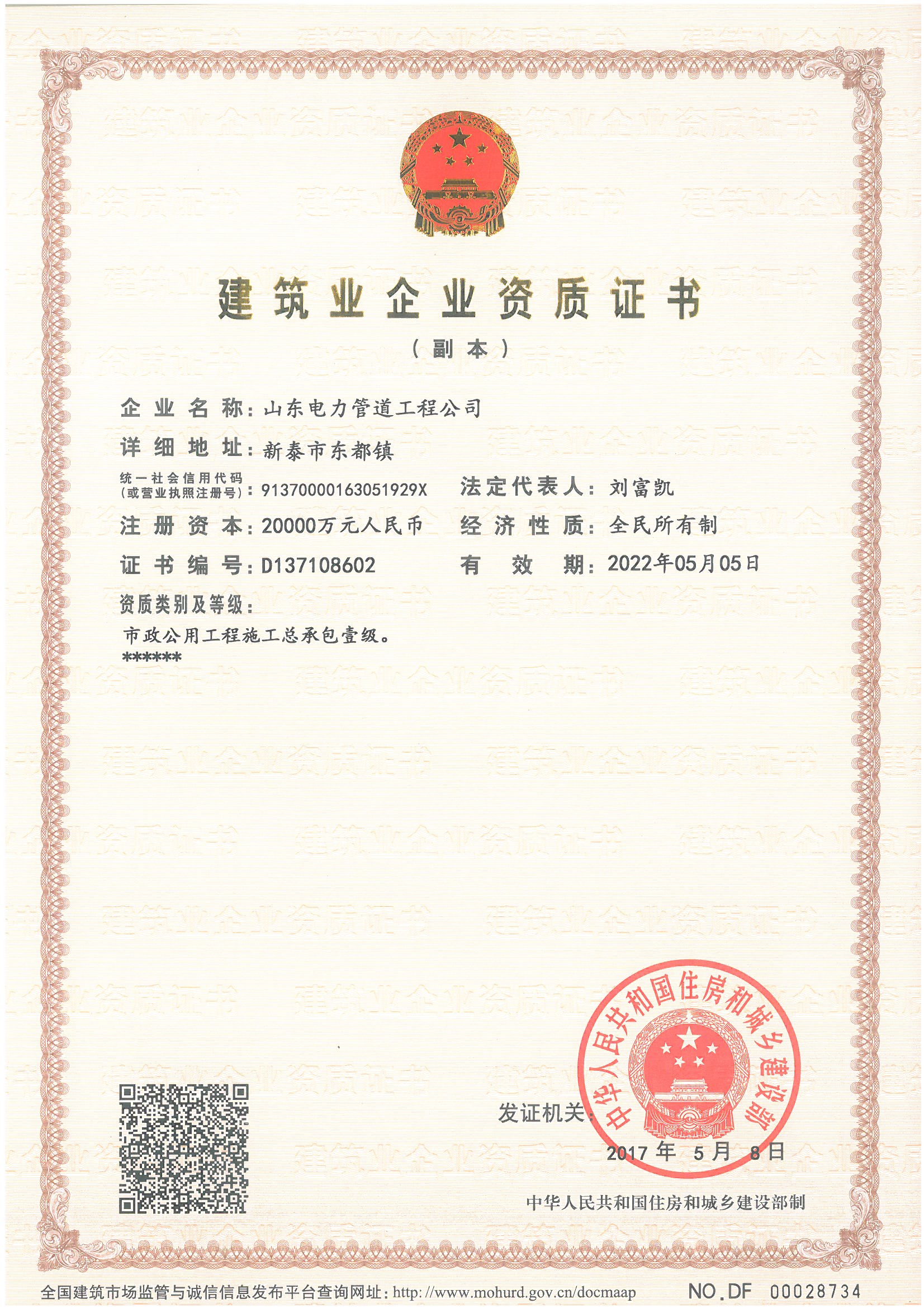 市政公用工程施工总承包壹级